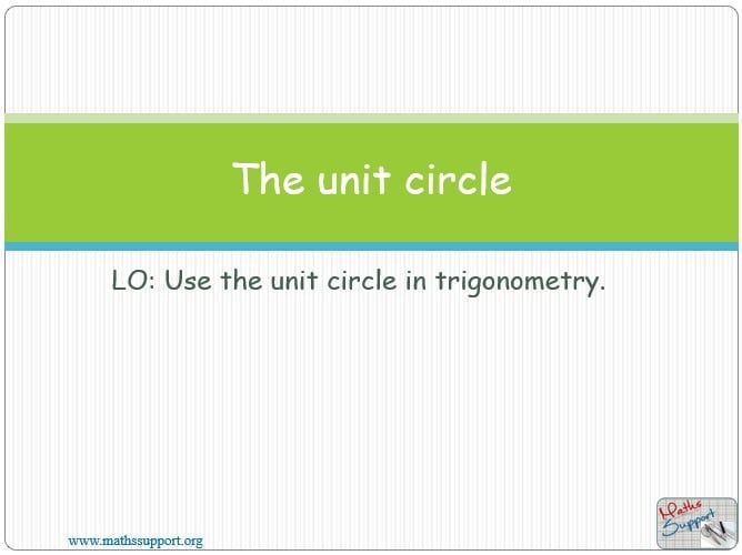 Power Point presentation, 14 slides, Explaining with examples how to use the unit circle in trigonometry to determine the values of sine and cosine, based on the Maths IB Analysis and approaches syllabus.