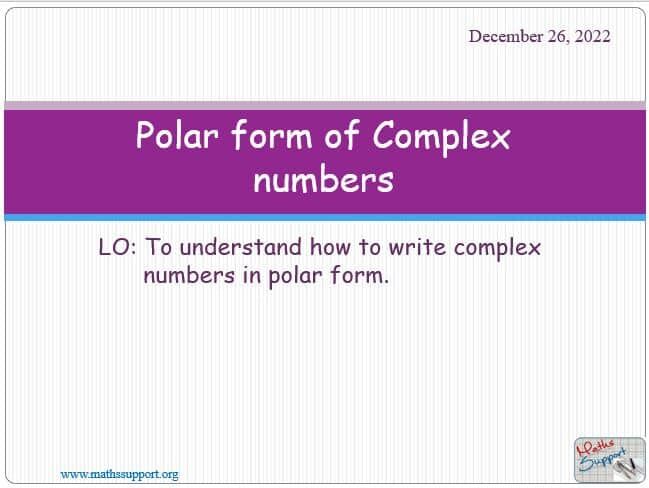 PowerPoint presentation, 7 slides, helping to understand how to write complex numbers in polar form, based on the Maths IB Applications and interpretation HL syllabus.
